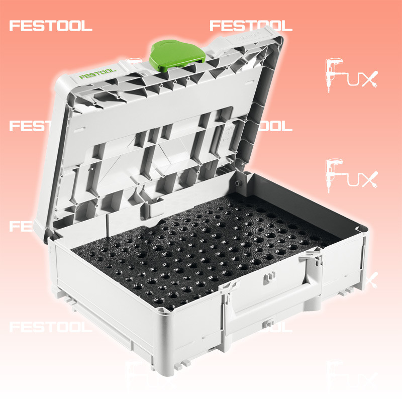 Zu "Systainer T-LOC mit Universaleinlage" von Festool Festool SYS3-OF D8/D12 Systainer³ Bestell- und Artikelnummer: 576835 Fräser ordentlich verstaut. Übersichtlich und sicher! Mit der speziellen Einlage sind die Fräser geschützt und immer schnell zur Hand. Die neue Generation Systainer³ macht mobiler denn je. Festool, TANOS und bott haben in Kooperation ein Mobilitätssystem entwickelt, das Werkstatt und Baustelle näher zusammenbringt. Durch die perfekte Integration in die bott vario3 Fahrzeugeinrichtung haben Sie die vom Systainer gewohnte Ordnung und das einfache Handling auch sicher in Ihrem Fahrzeug dabei. Schützt die Fräser vor Beschädigung Sorgt für eine gute Übersicht über alle Fräser Sauber verstaut und einfach zu transportieren dank des Systainer³ mit Formschaumeinsatz zur übersichtlichen Aufbewahrung von Fräswerkzeugen D 8, D 12 Für Fräser mit Schaft 8 - 12 mm Technische Daten Abmessung (L x B x H) 396 x 296 x 112 mm Innenabmessung (L x B x H) 389 x 275 x 71 mm Systainer-Größe SYS3 M 112 Zubehör Fuxpreis CHF 108.00 inklusive 8.1% MwSt Kein Grauimport! Produkt bestellen Festool Bestellungen können nurnoch per Mail gemacht werden.Zudem müssen diese Bestellungenbei uns in Rümlingen abgeholt werden.Wir bitten um Verständnis! Alle Angaben ohne Gewähr und solange Vorrat reicht! Produkt als PDF