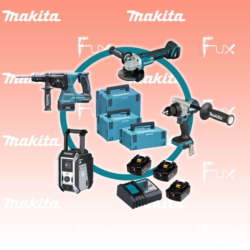 Makita Bürstenlose Mega-Combo SET 8 / 4-teilig DHR243ZJ Akku-Bohrhammer DGA506ZJ Akku-Winkelschleifer DMR 115 B Akku Radio DAB / DAB+ / FM / Bluetooth® - Black Edition DDF492Z Akku-Bohrschrauber BL 1850 B ( Li-Ion Akku ) DC 18 RC Schnell-Ladegerät Einsatz für diverse Akkuschrauber MAKPAC Gr. 2