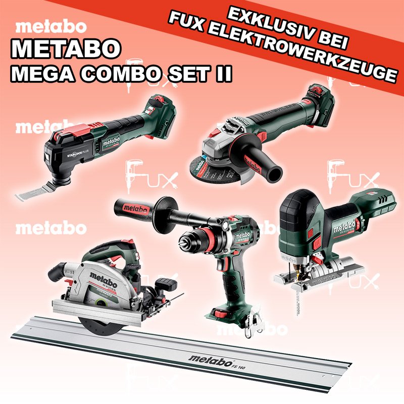 Heute auf dieses Produkt 48% Rabatt! Zu "Combo Set 18 Volt " von Metabo FULL Service: 36 Monate zum Nulltarif für Sie! Weitere Infos zum FULL Service Dieses Produkt ist CAS kompatibel! Weitere Infos zu CAS Black Fuxday Aktionen FUX SPECIAL EXKLUSIV BEI FUX Metabo Mega Combo Set 2 SOLO Bestell- und Artikelnummer: Mega Combo Set 2 SOLO STA 18 LTX 150 BL Akku-StichsägeAkkuspannung 18 V Hubzahl 1.000-3.500 /min Gewicht ohne Akkupack 1.9 kgInfos BS 18 LTX BL Q I Akku-BohrschrauberAkkuspannung 18 V Drehzahl 0-550 / 0-2000 U/min Drehmoment hart / weich 130 / 65 Nm Gewicht (mit Akkupack) 2.3 kgInfos MT 18 LTX BL QSL Akku-Multitool Akkuspannung 18 V Schwingzahl bei Leerlauf 8.000 - 20.000 /min Schleifplatte, Maß Eck zu Eck 93 mm Gewicht 1.7 kgInfos WVB 18 LT BL 11-125 Quick Akku-WinkelschleiferAkkuspannung 18 V Drehzahl 2.800 - 10.000 / min Ø 125 mm Scheiben Gewicht (mit Akkupack) 2.5 kgInfos KS 18 LTX 66 BL Akku HandkreissägeAkkuspannung 18 V Schnitt-Tiefe bei 90° 0-66 mm Sägeblatt 165 mm Gewicht 4.5 kgInfos FS 160 FührungsschieneGesamtlänge 1600 mmInfos Registriere die in diesem Set vorhandenen Metabo Maschinen auf metabo.ch, und ergattere dir bis zu 5 Gratis Akkus!Zusätzlich offerieren wir zu diesem Set einen Gratis Akku!OHNE AKKUS UND LADEGERÄT Standard-Ausrüstung In diesem Set enthalten: STA 18 LTX 150 BL Akku-Stichsäge BS 18 LTX BL Q I Akku-Bohrschrauber MT 18 LTX BL QSL Akku-Multitool WVB 18 LT BL 11-125 Quick Akku-Winkelschleifer KS 18 LTX 66 BL Akku Handkreissäge FS 160 Führungsschiene Zubehör Verbrauchsmaterial Listenpreis CHF 1'909.50 Fuxpreis CHF 987.00 inkl. 8.1% MwSt, inkl vRG Versand CHF 30.00 Kein Grauimport! Produkt bestellen 1 Stück 2 Stück 3 Stück 4 Stück 5 Stück 6 Stück 7 Stück 8 Stück 9 Stück 10 Stück Alle Angaben ohne Gewähr und solange Vorrat reicht!Wiederverkäufer werden? Produkt als PDFVideo LiHD 1Video LiHD 2 AKTION 48%