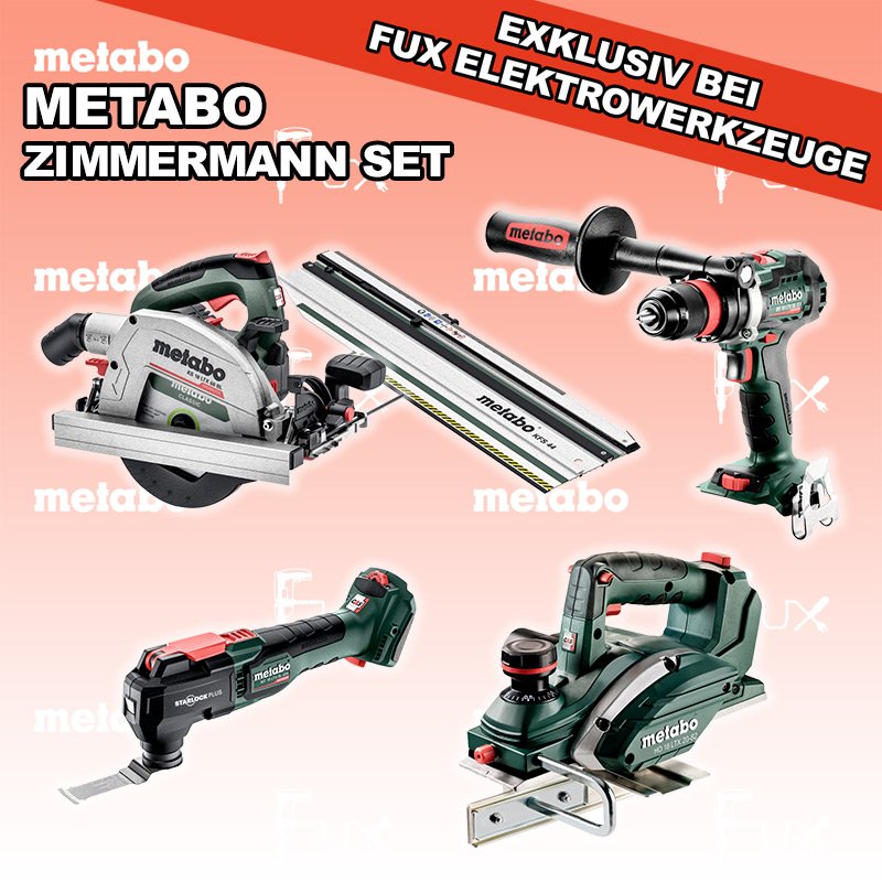 Metabo Zimmermann SET  6 SOLO BS 18 LTX BL Q I Akku-Bohrschrauber MT 18 LTX BL QSL Akku-Multitool HO 18 LTX 20-82 Akku-Einhand-Hobel KS 18 LTX 66 BL Akku Handkreissäge Kappschiene KFS 44