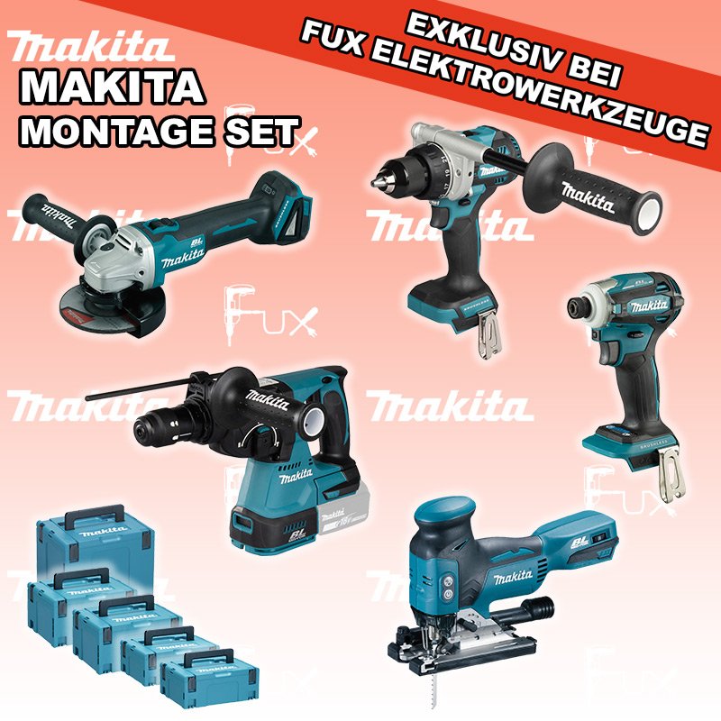 Makita Montage Set 1 SOLO DHR243ZJ Akku-Bohrhammer DDF492Z Akku-Bohrschrauber DGA506ZJ Akku-Winkelschleifer DJV18ZJ Akku-Stichsäge DTD173Z Akku-Schlagschrauber MAKPAC Gr. 2 Einsatz für diverse Akkuschrauber Einsatz für diverse Schlagschrauber