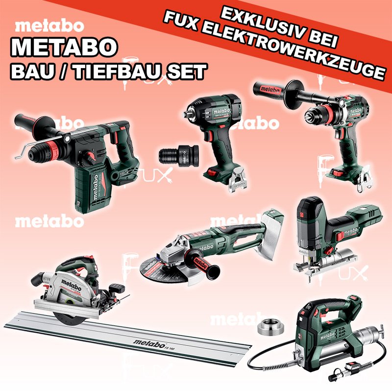 Zu "Bau / Tiefbau Set" von Metabo FULL Service: 36 Monate zum Nulltarif für Sie! Weitere Infos zum FULL Service FUX SPECIAL EXKLUSIV BEI FUX Metabo Bau / Tiefbau Set 9 SOLO Bestell- und Artikelnummer: Bau / Tiefbau Set 9 SOLO BS 18 LTX BL Q I Akku-BohrschrauberAkkuspannung 18 V Drehzahl 0-550 / 0-2000 U/min Drehmoment hart / weich 130 / 65 Nm Gewicht (mit Akkupack) 2.3 kgInfos ST 18 LT 130 BL Akku-StichsägeAkkuspannung 18 V Hubzahl 1000-3.500 /min Gewicht ohne Akkupack 1.5 kgInfos KH 18 LTX BL 24 Q Akku-KombihammerAkkuspannung 18 V Einzelschlagstärke 2.2 J Bohrleistung in Beton 24 mm Gewicht ohne Akkupack 3 kgInfos WPB 36-18 LTX BL 24-230 Akku-WinkelschleiferAkkuspannung 2 x 18 V Drehzahl 6600 U / min Ø 230 mm Scheiben Gewicht (mit Akkupack) 6.5 kgInfos SSW 18 LTX 550 BL Akku-SchlagschrauberAkkuspannung 18 V Anziehdrehmoment 550 Nm Werkzeugaufnahme 1/2" Gewicht ohne Akkupack 1,4 kgInfos FP 18 LTX Akku FettpresseAkkuspannung 18 V Maximaler Druck 690 bar Auspressgeschwindigkeit 100 / 290 ml/min Gewicht inkl. Akku 4.4 kgInfos KS 18 LTX 66 BL Akku HandkreissägeAkkuspannung 18 V Schnitt-Tiefe bei 90° 0-66 mm Sägeblatt 165 mm Gewicht 4.5 kgInfos Adapter für Lube-Shuttle® 400GAdapter zum Umrüsten von Fettbehälter auf Lube-Shuttle®* Kartusche 400g geeignet für FP 18 LTXInfos FS 160 FührungsschieneGesamtlänge 1600 mmInfos Adapter mit 1/2“ auf 1/4"Adapter mit 1/2“ Innenvierkant maschinenseitig und 1/4“ Innensechskant für schlagfeste Einsatzwerkzeuge mit 1/4“ SchaftInfos Registriere die in diesem Set vorhandenen Metabo Maschinen auf metabo.ch, und ergattere dir bis zu 5 Gratis Akkus!Zusätzlich offerieren wir zu diesem Set einen Gratis Akku!OHNE AKKUS UND LADEGERÄT Standard-Ausrüstung In diesem Set enthalten: BS 18 LTX BL Q I Akku-Bohrschrauber ST 18 LT 130 BL Akku-Stichsäge KH 18 LTX BL 24 Q Akku-Kombihammer WPB 36-18 LTX BL 24-230 Akku-Winkelschleifer SSW 18 LTX 550 BL Akku-Schlagschrauber FP 18 LTX Akku Fettpresse KS 18 LTX 66 BL Akku Handkreissäge Adapter für Lube-Shuttle® 400G FS 160 Führungsschiene Adapter mit 1/2“ auf 1/4" Listenpreis CHF 2'846.00 Fuxpreis CHF 1'945.00 inklusive 8.1% MwSt Frankolieferung Kein Grauimport! Produkt bestellen 1 Stück 2 Stück 3 Stück 4 Stück 5 Stück 6 Stück 7 Stück 8 Stück 9 Stück 10 Stück Alle Angaben ohne Gewähr und solange Vorrat reicht!Wiederverkäufer werden? Produkt als PDF NEUHEIT 31%