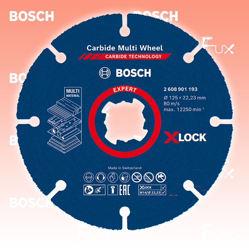 Zu "Universal Diamanttrennscheibe mit Diamant Technology X-LOCK" von Bosch Professional Bosch Expert Multi Material Carbide-Trennscheibe 125 mm Bestell- und Artikelnummer: 2608901195 Zum Schneiden verschiedenster Materialien Überragende Lebensdauer dank Bosch Carbide Technology Herausragende Lebensdauer in verschiedenen Werkstoffen Der gleichbleibende Durchmesser hält Schnittgeschwindigkeit und Schnittkapazität konstant hoch Extra starke Laserverbindung von Carbide-Korn und Stahlkörper geeignet für: Gipskartonplatte Hartholz Holz mit Nägel Kunststoff Technische Daten Durchmesser 125 mm Standard-Ausrüstung Verkaufseinheit 10 Stk. Listenpreis CHF 258.60 Fuxpreis CHF 207.00 inklusive 8.1% MwSt Versand CHF 15.00 Kein Grauimport! Produkt bestellen Verkaufseinheit 10 Stk. 1 Stück 2 Stück 3 Stück 4 Stück 5 Stück 6 Stück 7 Stück 8 Stück 9 Stück 10 Stück 11 Stück 12 Stück 13 Stück 14 Stück 15 Stück 16 Stück 17 Stück 18 Stück 19 Stück 20 Stück 21 Stück 22 Stück 23 Stück 24 Stück 25 Stück 26 Stück 27 Stück 28 Stück 29 Stück 30 Stück 31 Stück 32 Stück 33 Stück 34 Stück 35 Stück 36 Stück 37 Stück 38 Stück 39 Stück 40 Stück 41 Stück 42 Stück 43 Stück 44 Stück 45 Stück 46 Stück 47 Stück 48 Stück 49 Stück 50 Stück Alle Angaben ohne Gewähr und solange Vorrat reicht! Produkt als PDF 20%
